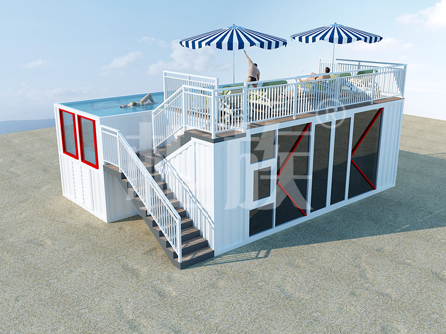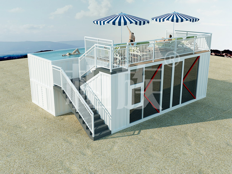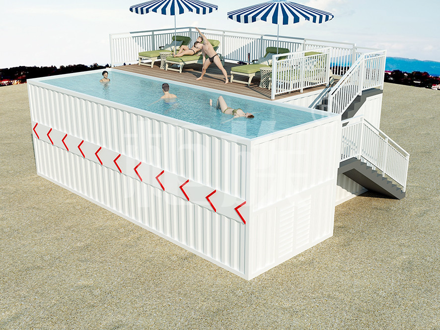The container swimming pool can be completely prefabricated in the factory, with small area and low cost. It is suitable for courtyard, seaside resort and other public amusement park.
