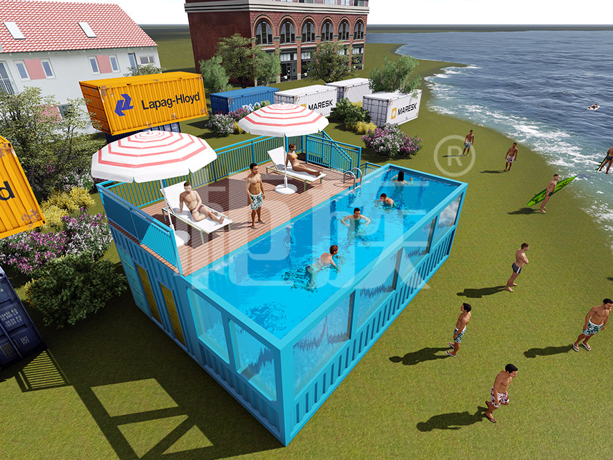 集裝箱泳池可以完全在工廠(chǎng)預制完成,占地小、造價(jià)低,適合庭院、海邊的度假地、以及其他公共游樂(lè )場(chǎng)所使用。