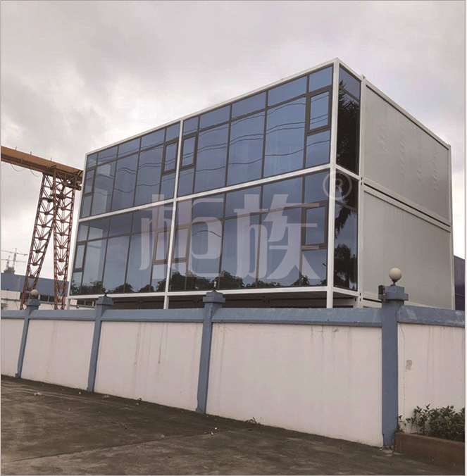 該打包箱辦公室上下三層,在設計上注重功能的實(shí)用性和選材用材的環(huán)保性??傮w約可容納50人的辦公和會(huì )議需求。